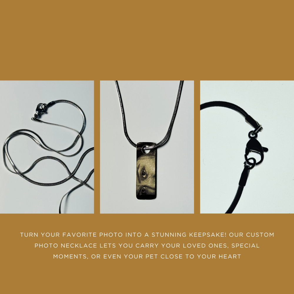 Crafted with care, each necklace features a high-resolution image encased in a sleek, durable pendant—available in various finishes to match your style.